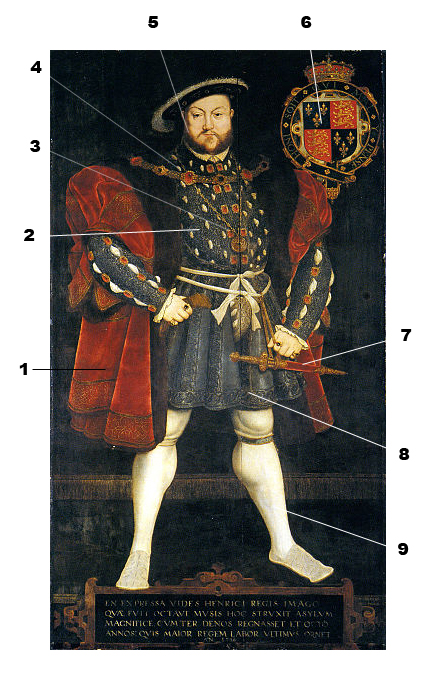 8 Silk clothing. Silk cloth could only be worn legally by a member of the aristocracy and this would be known by all his subjects.